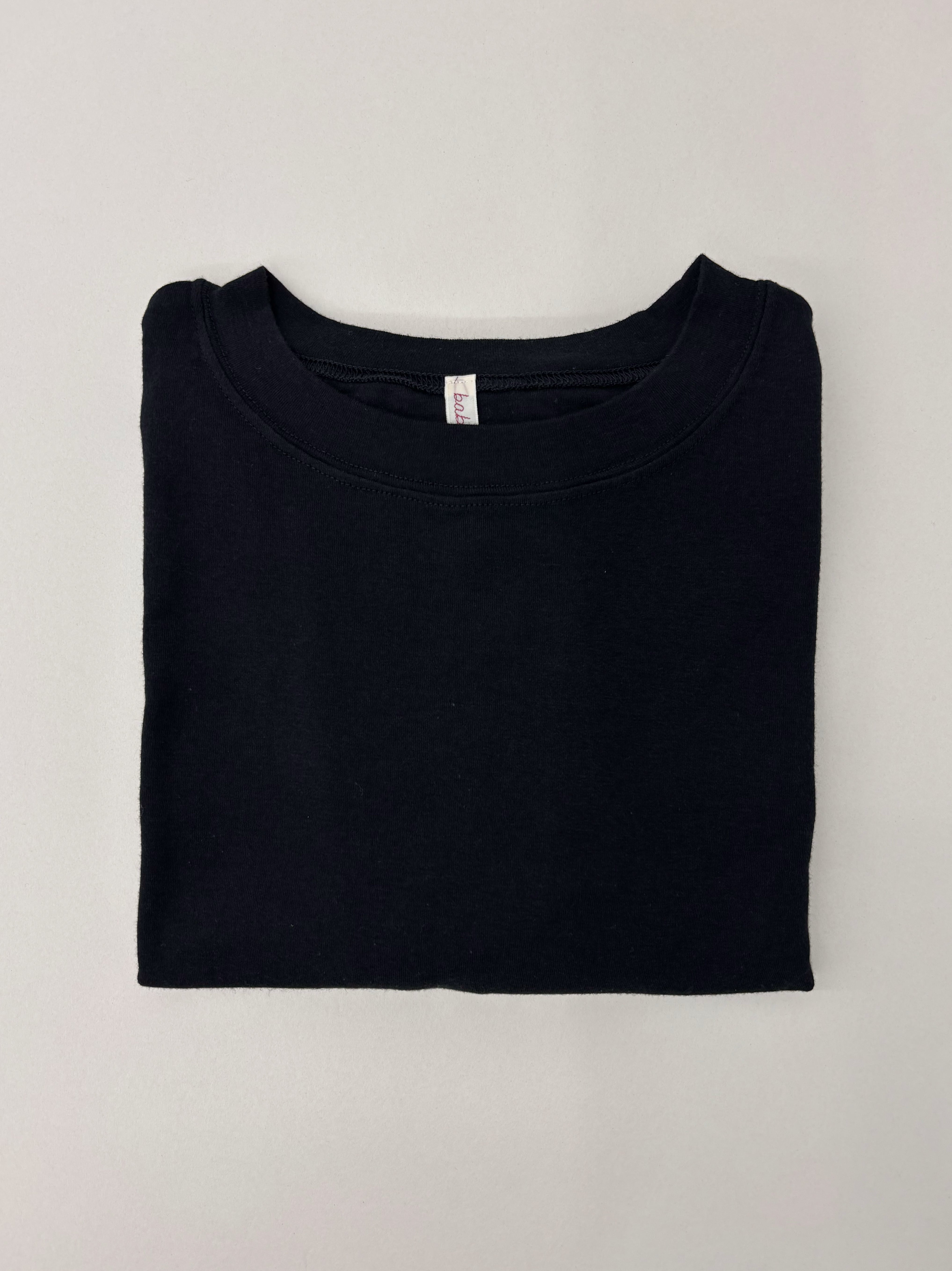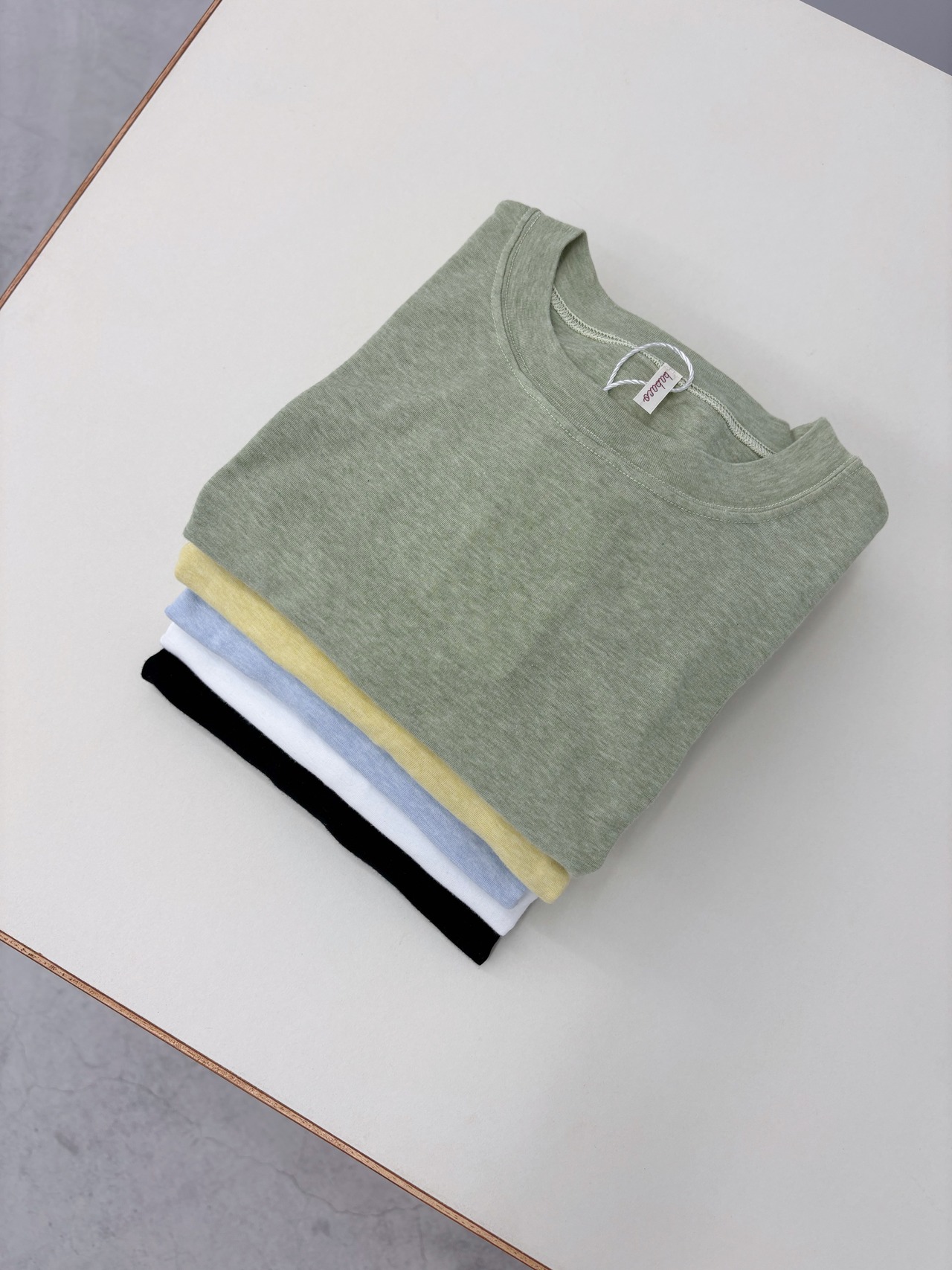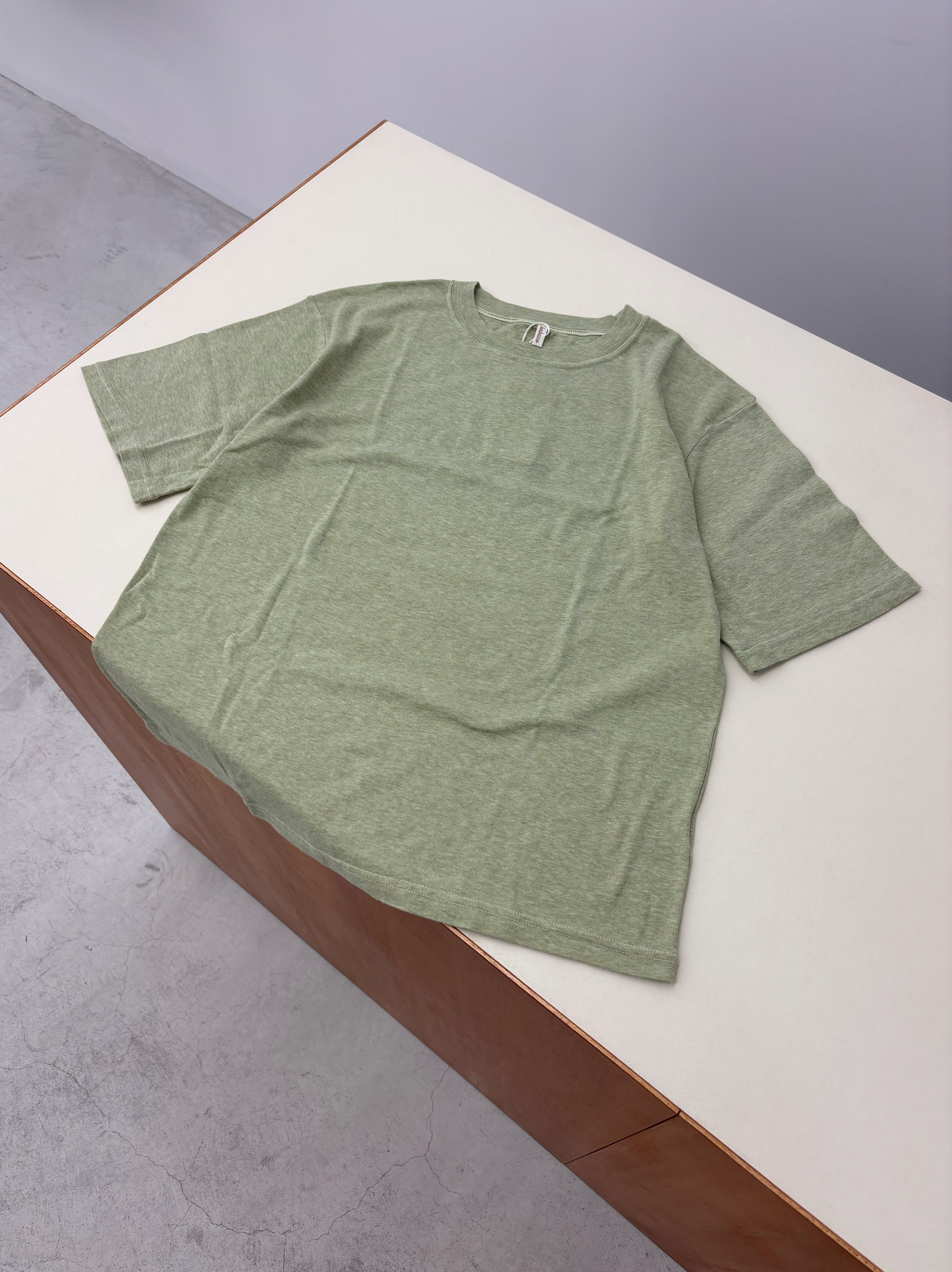 肌触りの良いコットンシルク生地を使用。程よいゆとりのあるリラックスシルエットのT-シャツ。