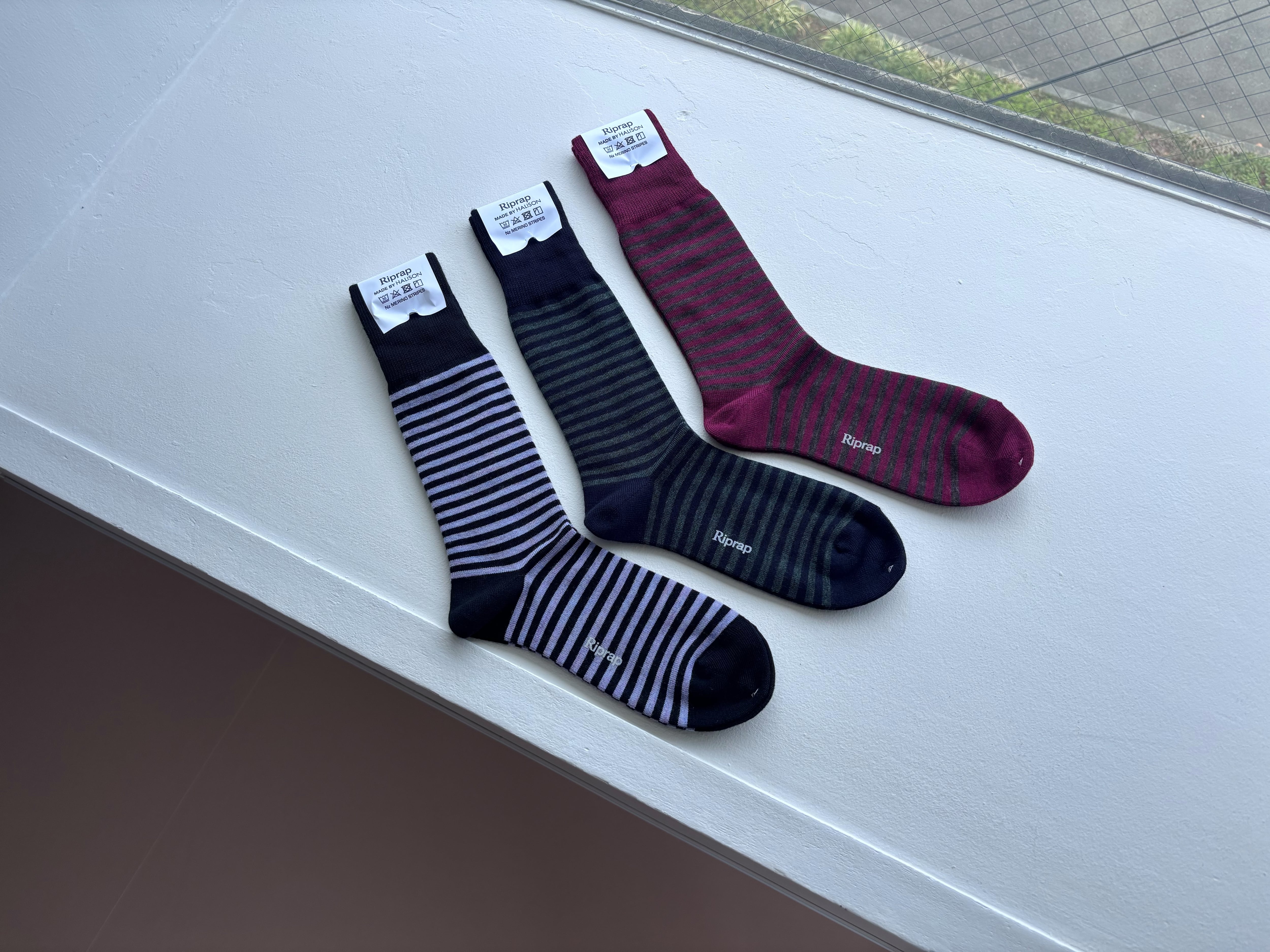 Riprap新型のボーダーソックス(NZメリノウール)。