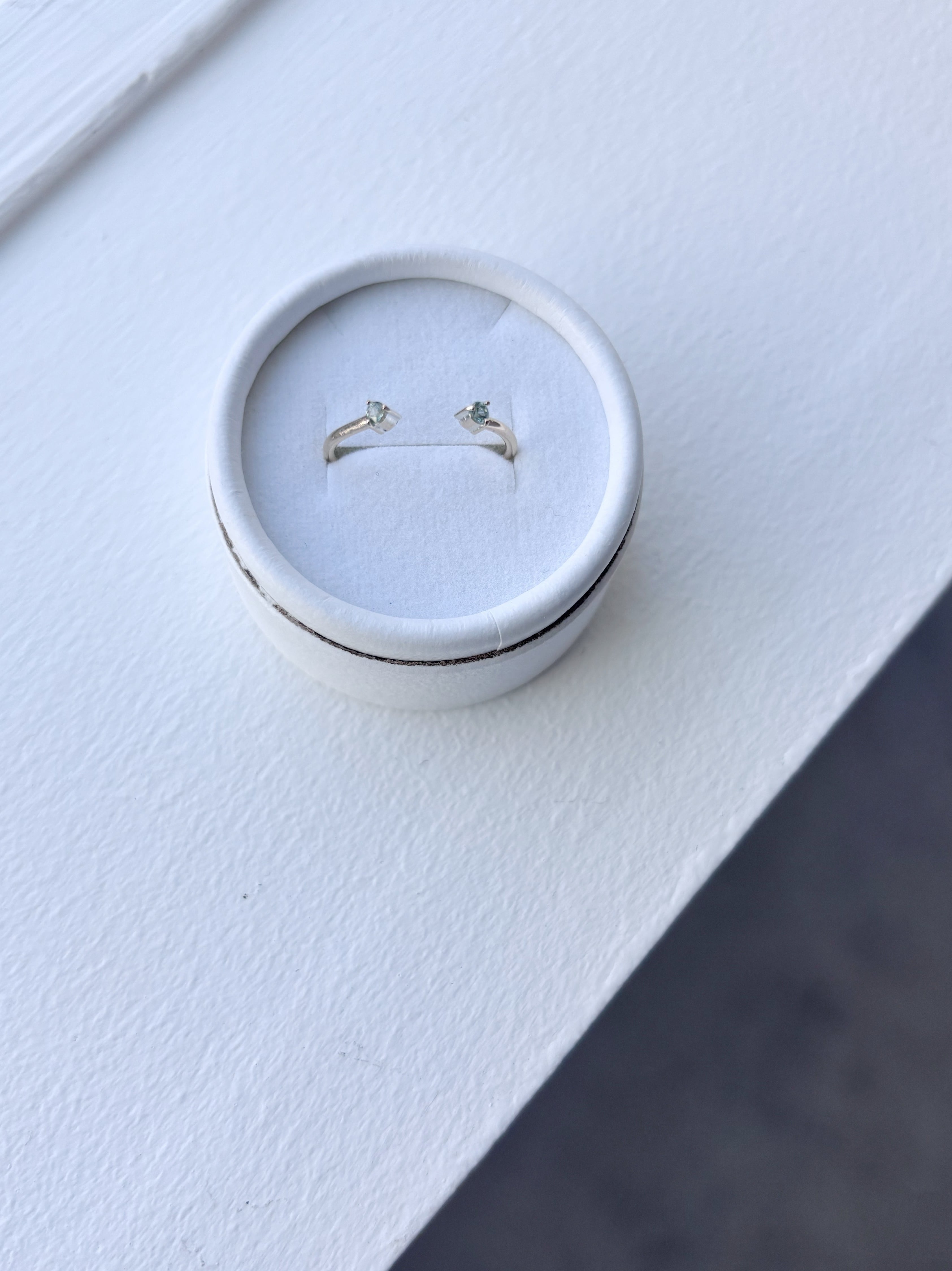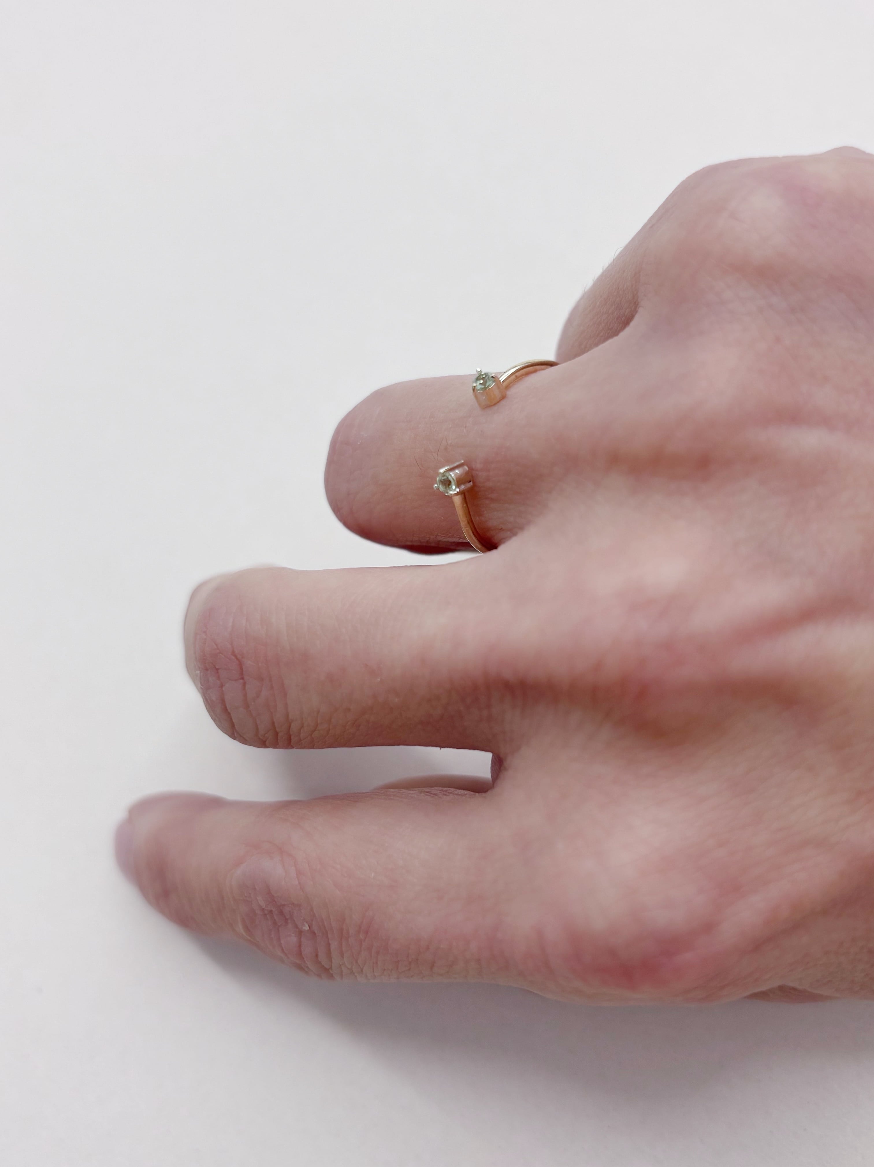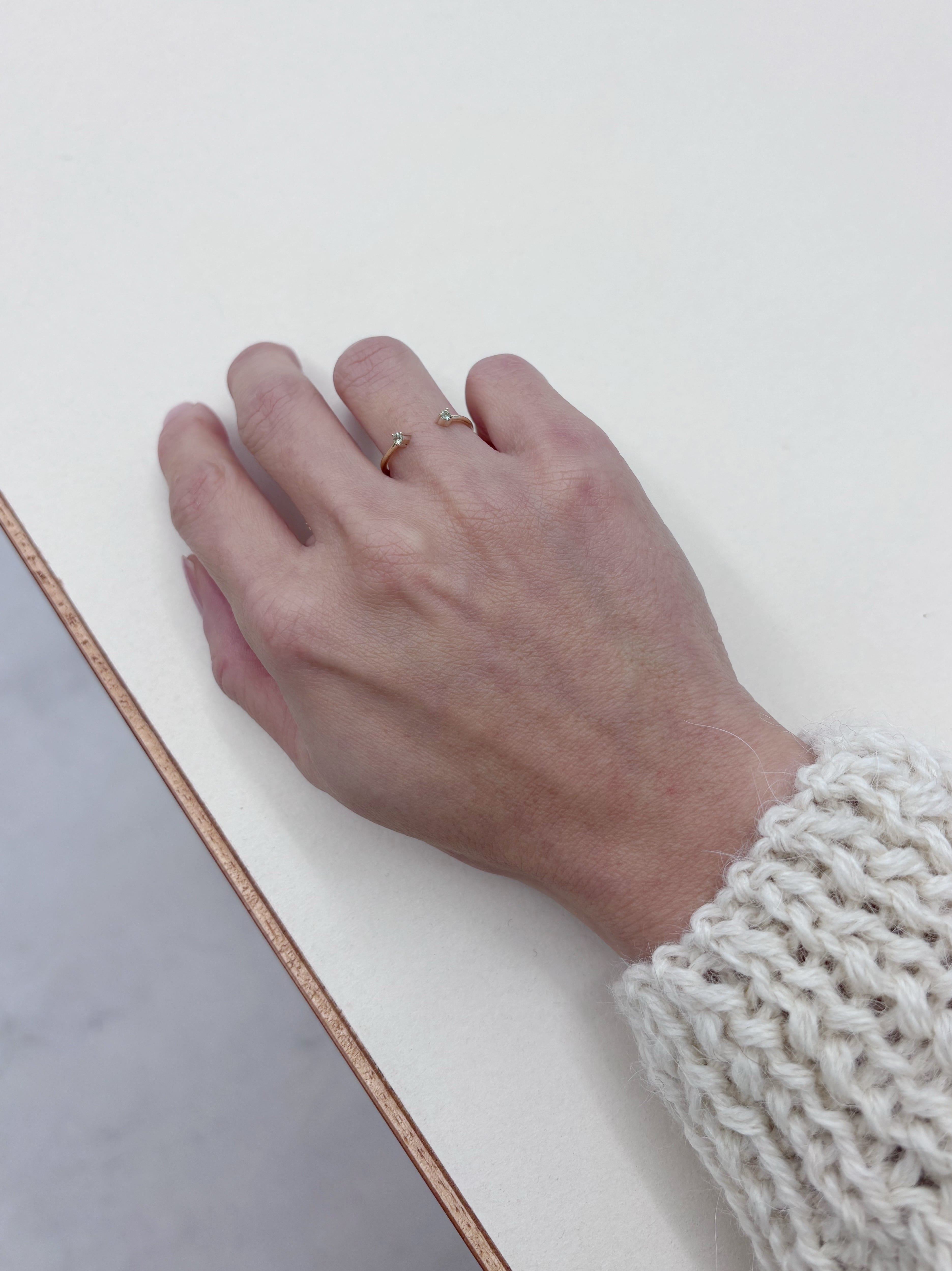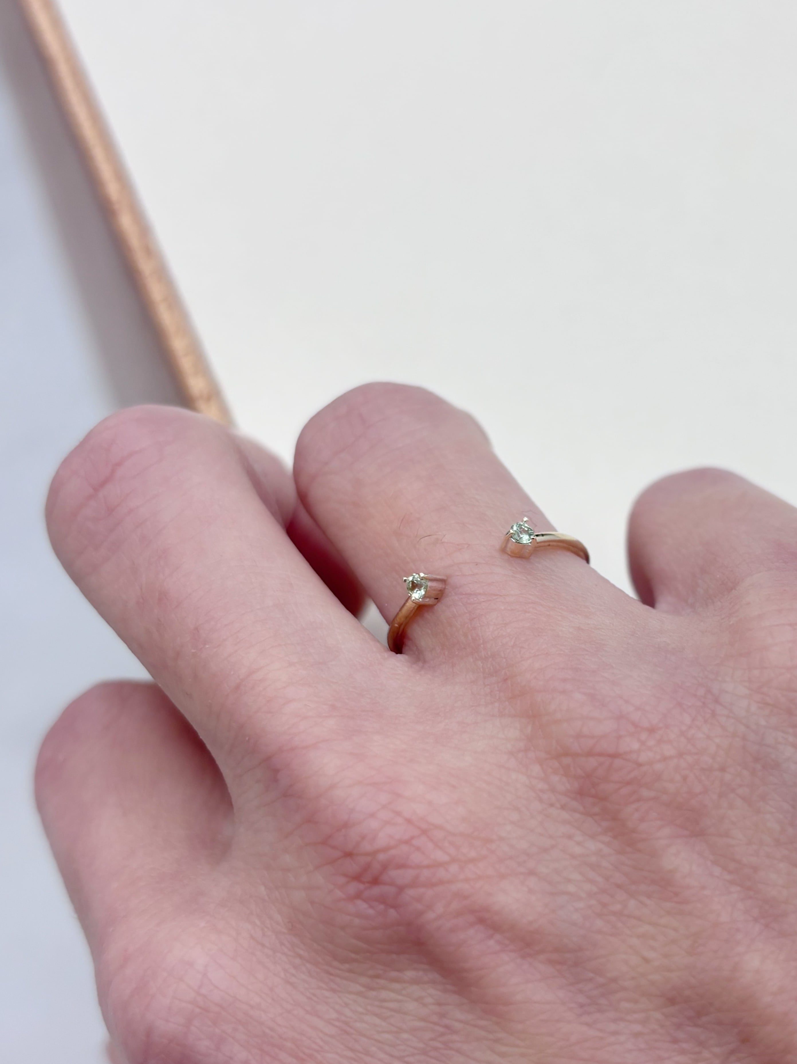 ふたつの小さな石をあしらった線の細いオープンリング。