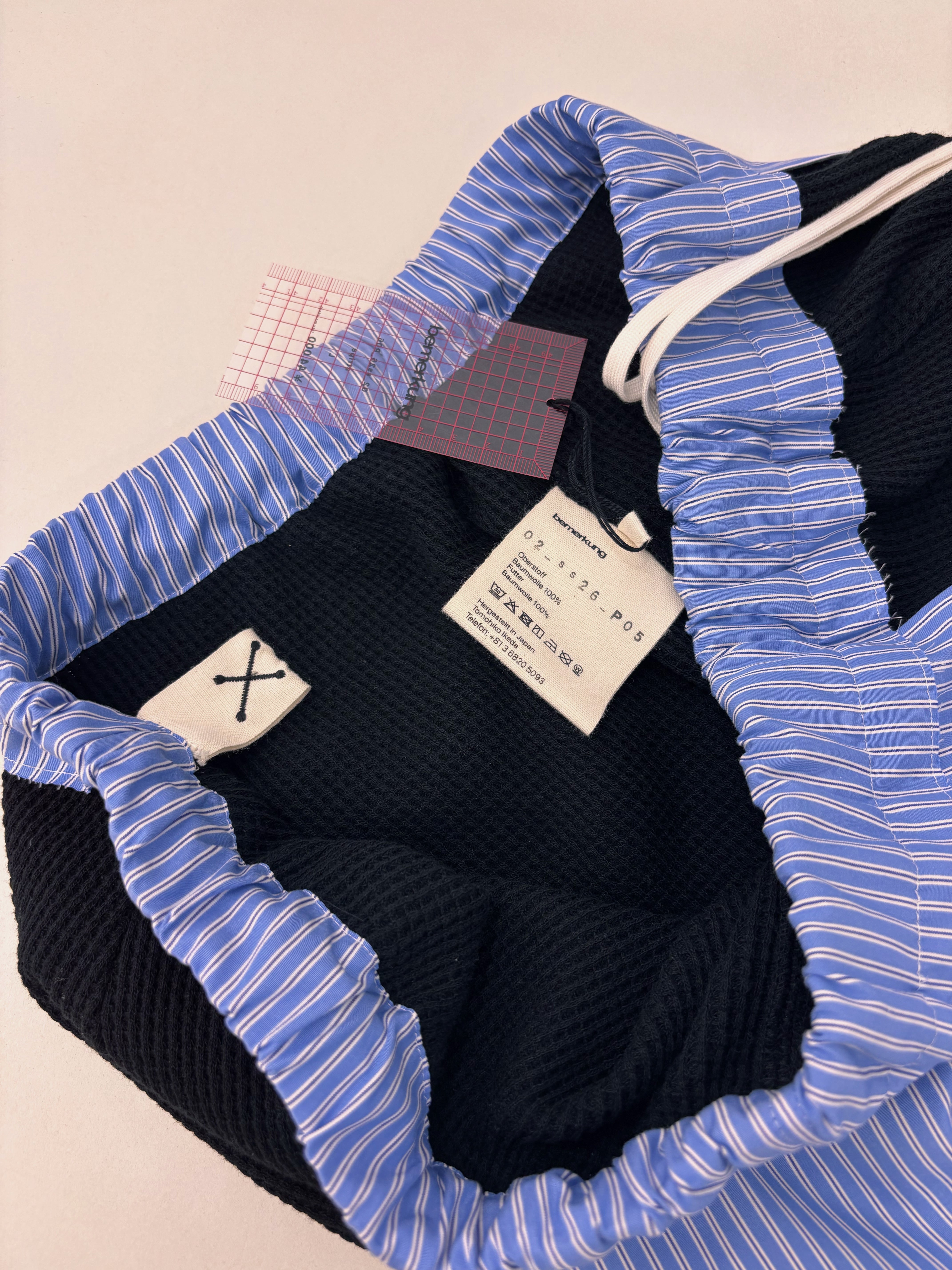 「衣服のパターンの構造、機能性を再解釈して作業的にデザインしていく」をテーマに、元COMME des GARCONS HOMME PLUSのパタンナーであった池田友彦が2025年より立ち上げたファッションブランド。