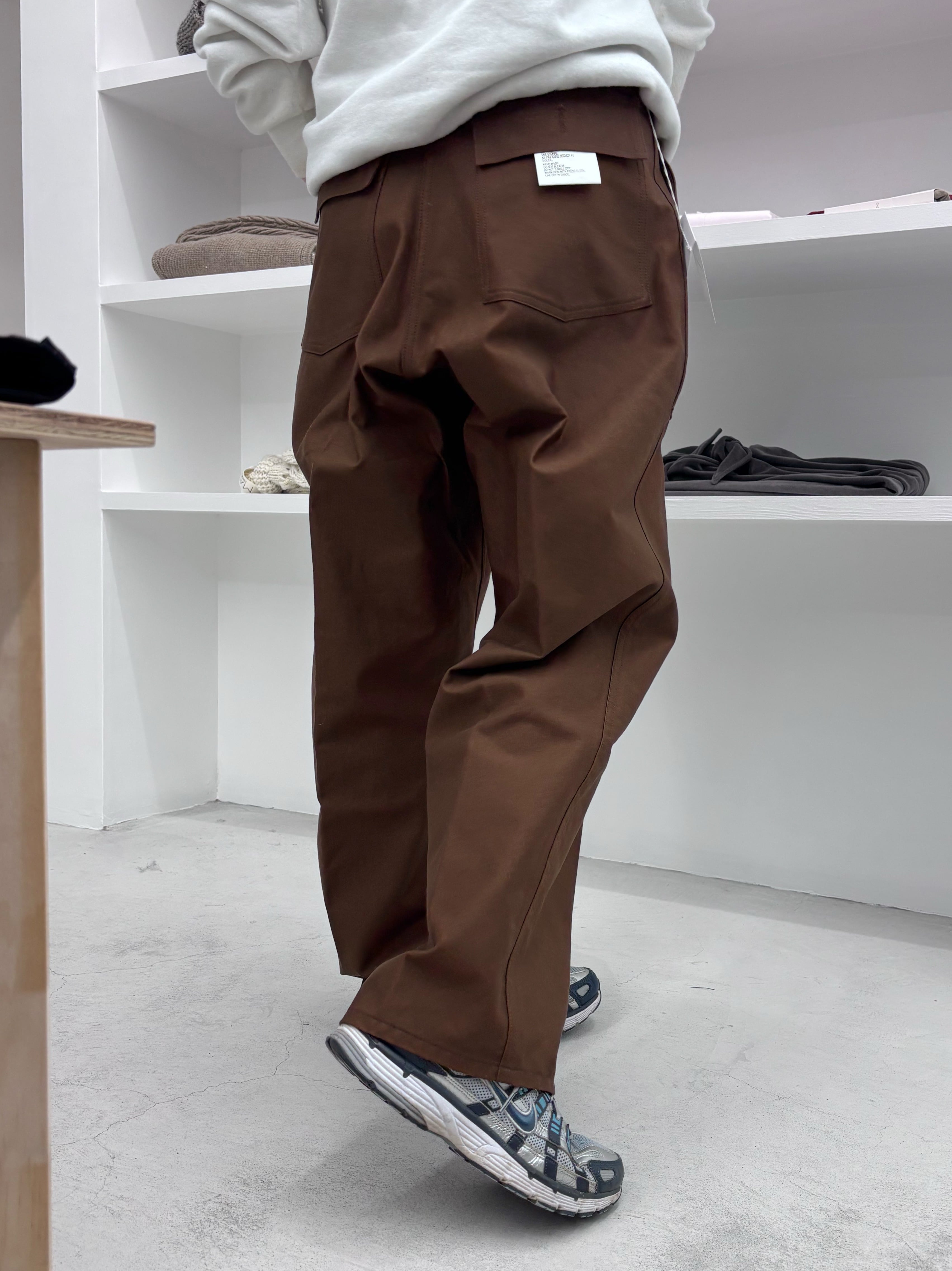 全体的にゆったりとしたワイドシルエットのトラウザース。