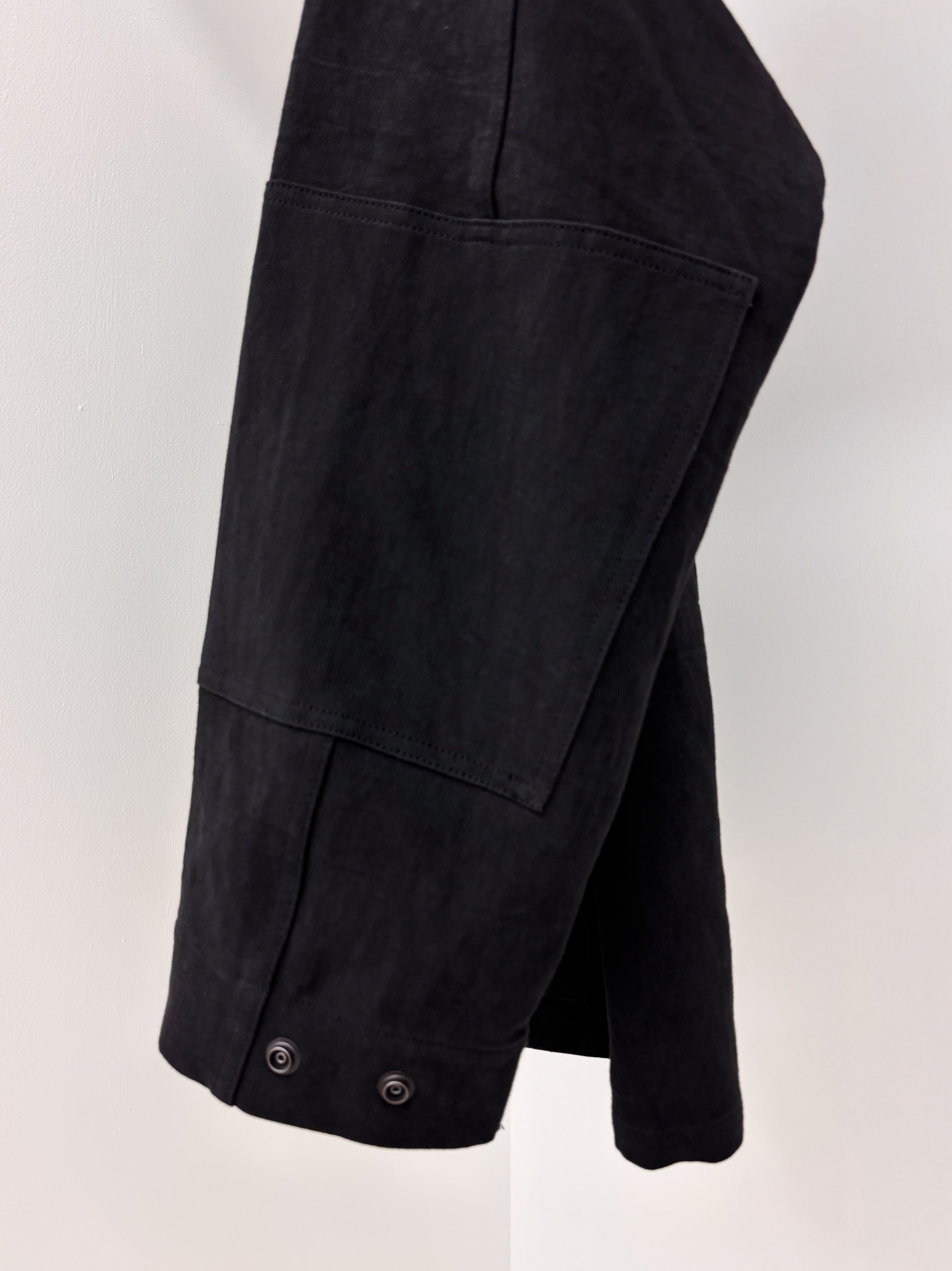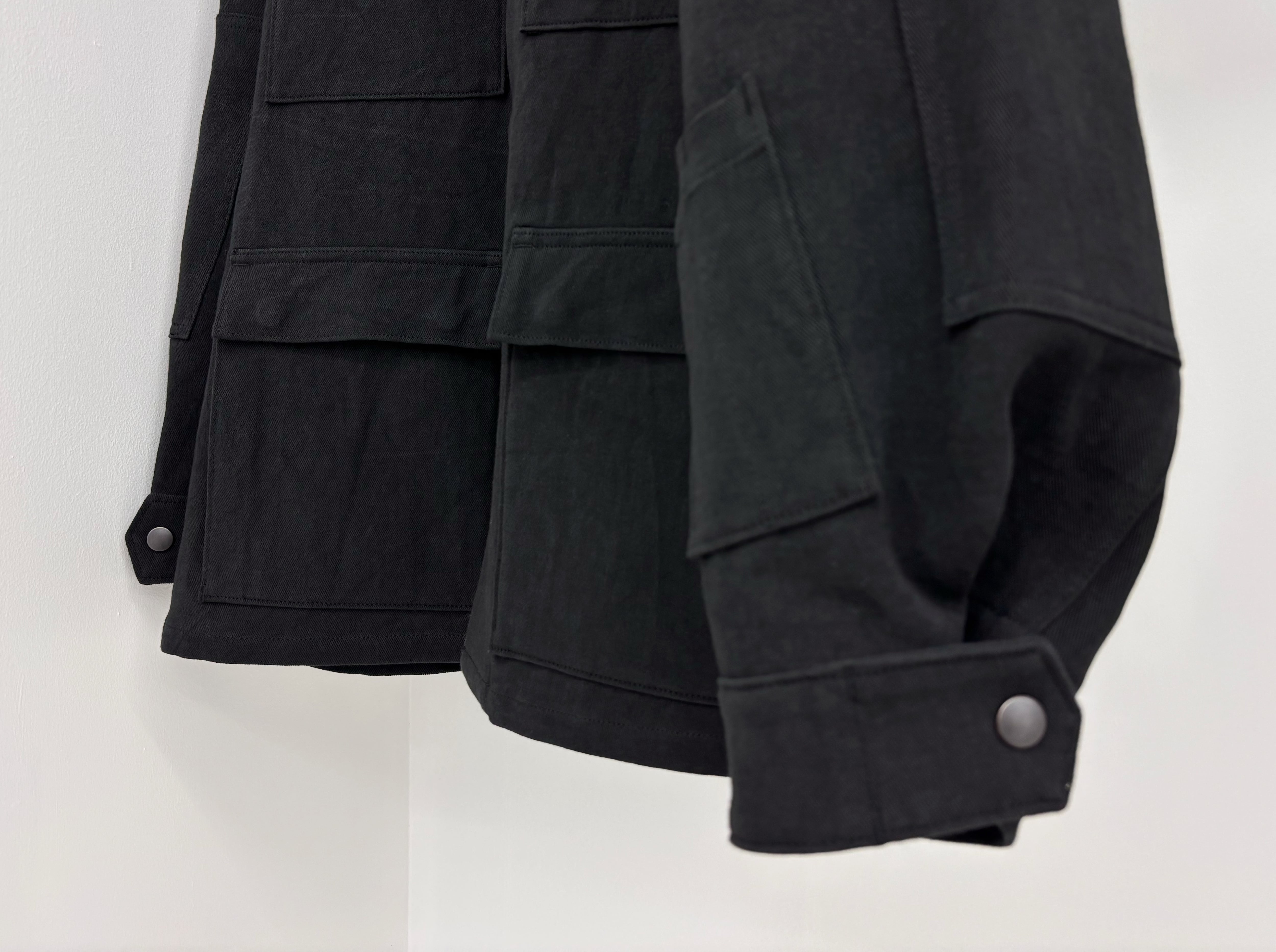 ブラックは墨黒のような色味。着用と洗濯による経年変化で色の濃淡が徐々に浮かび上がる楽しみがあります。タフに着てボロボロになるまで着倒してほしい、そんな一着です。