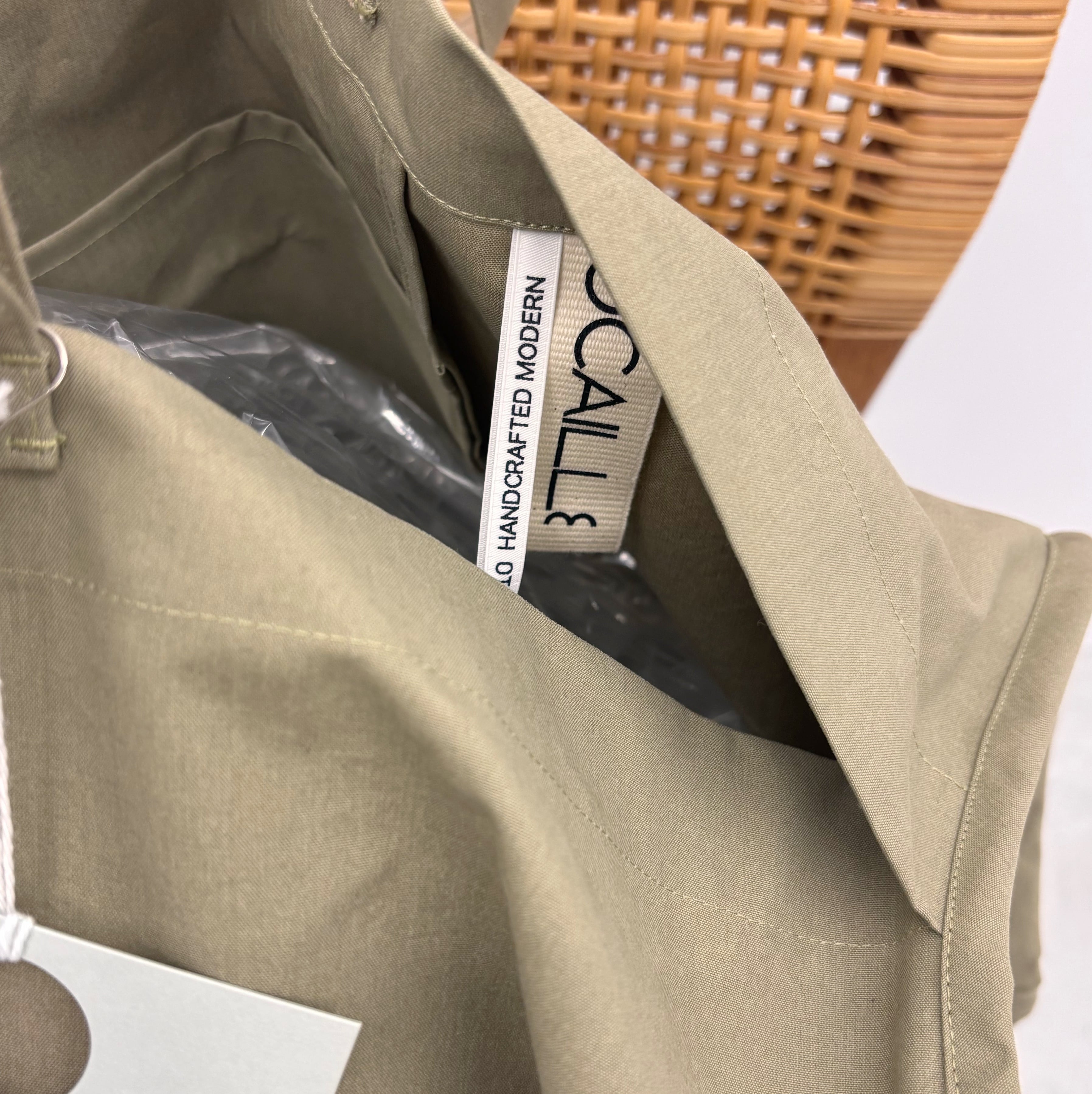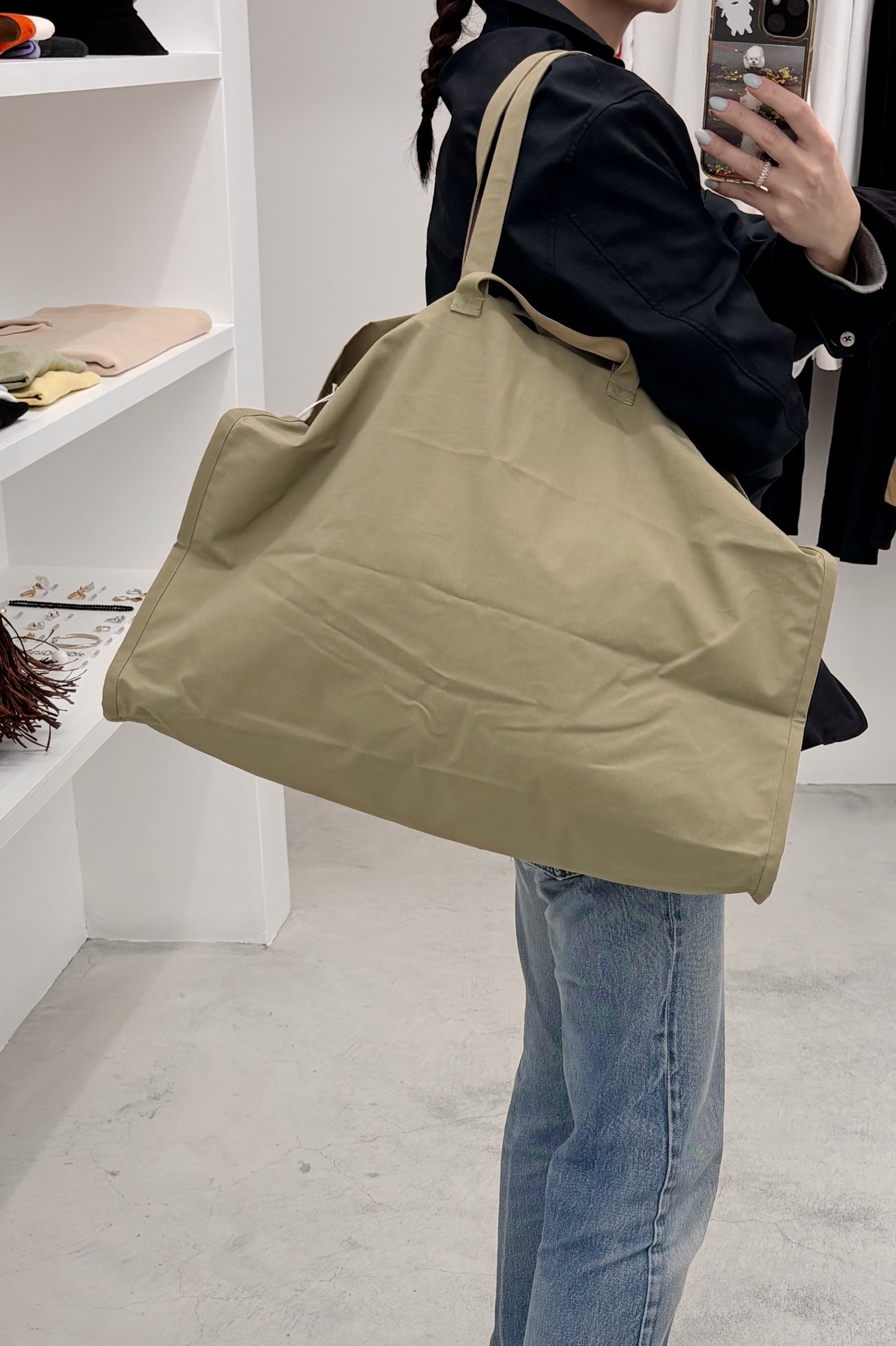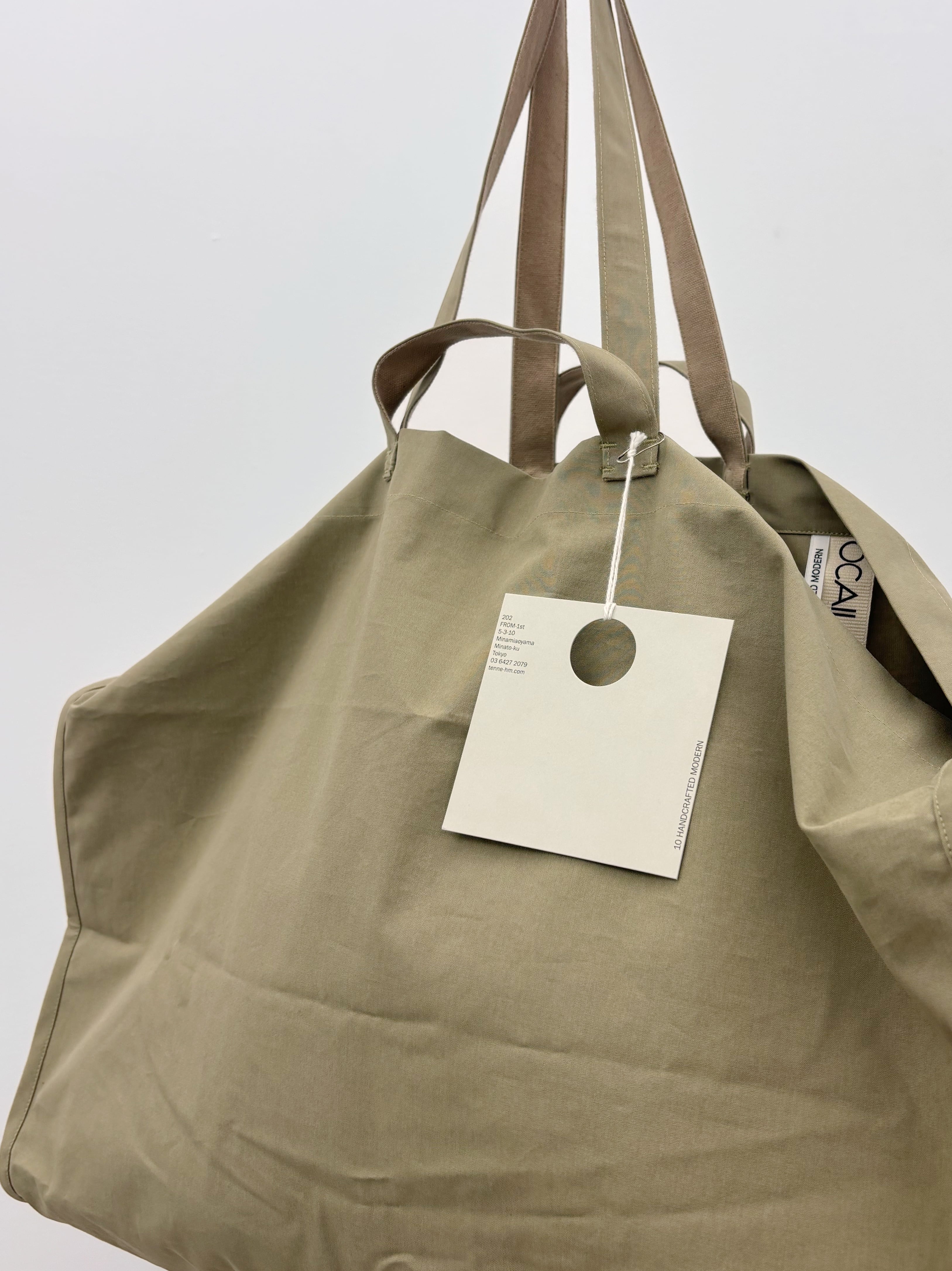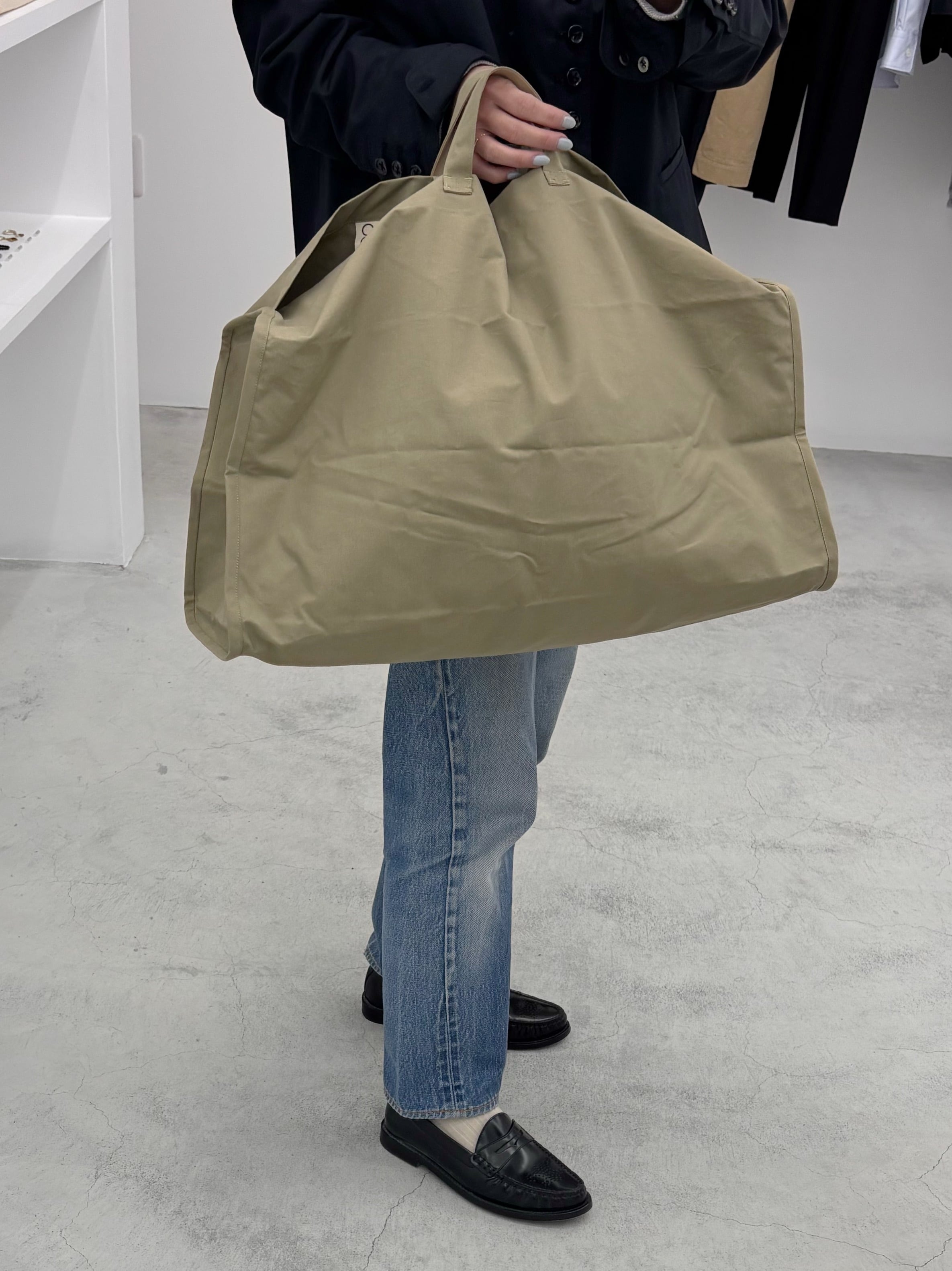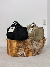 big size trenchと同じbrisbane mossの生地で作られたボストンバッグ。