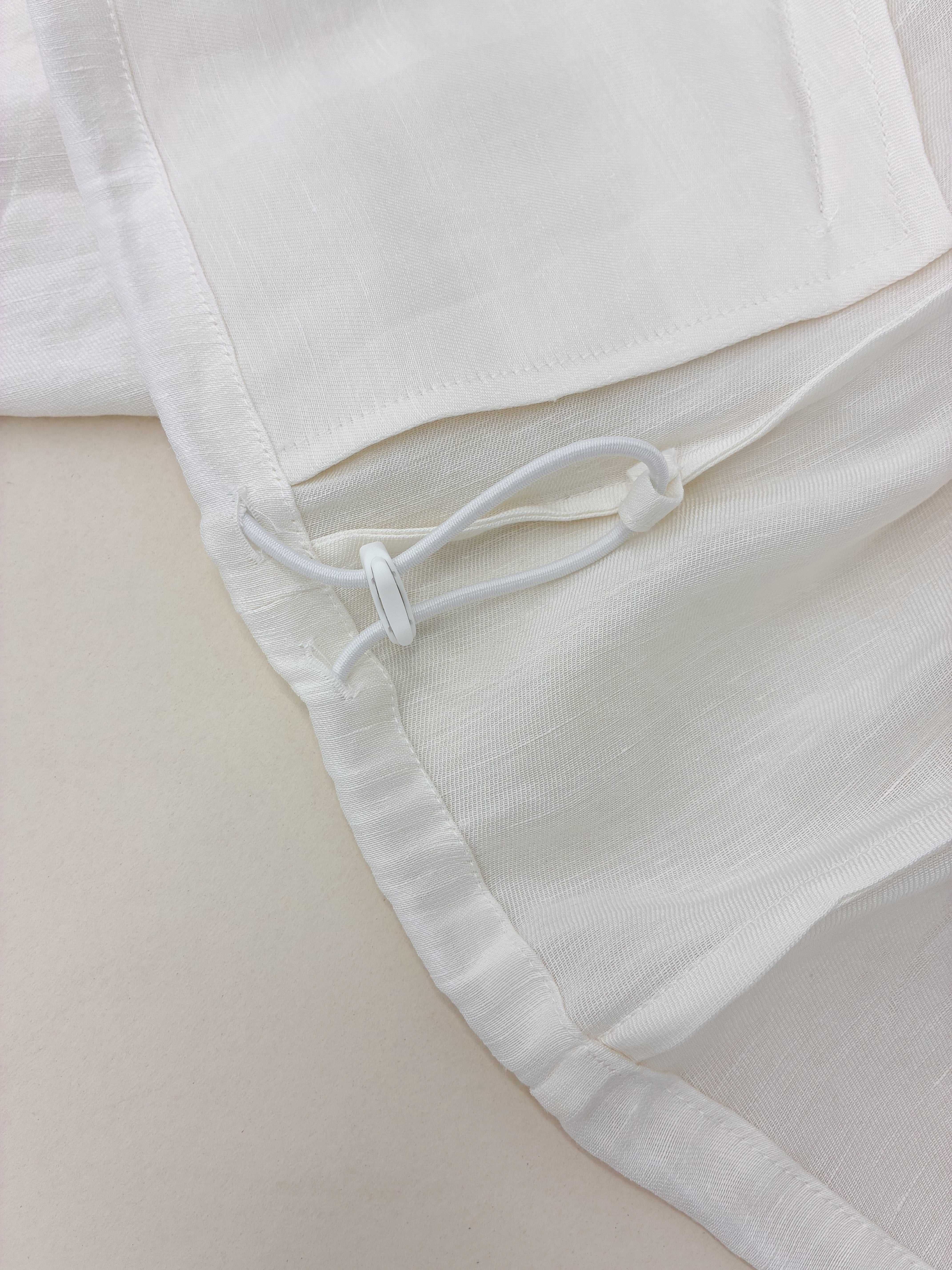 オリジナルのリネンキュプラ生地は、ハリとほのかな光沢を備え、上品な存在感を放ちます。