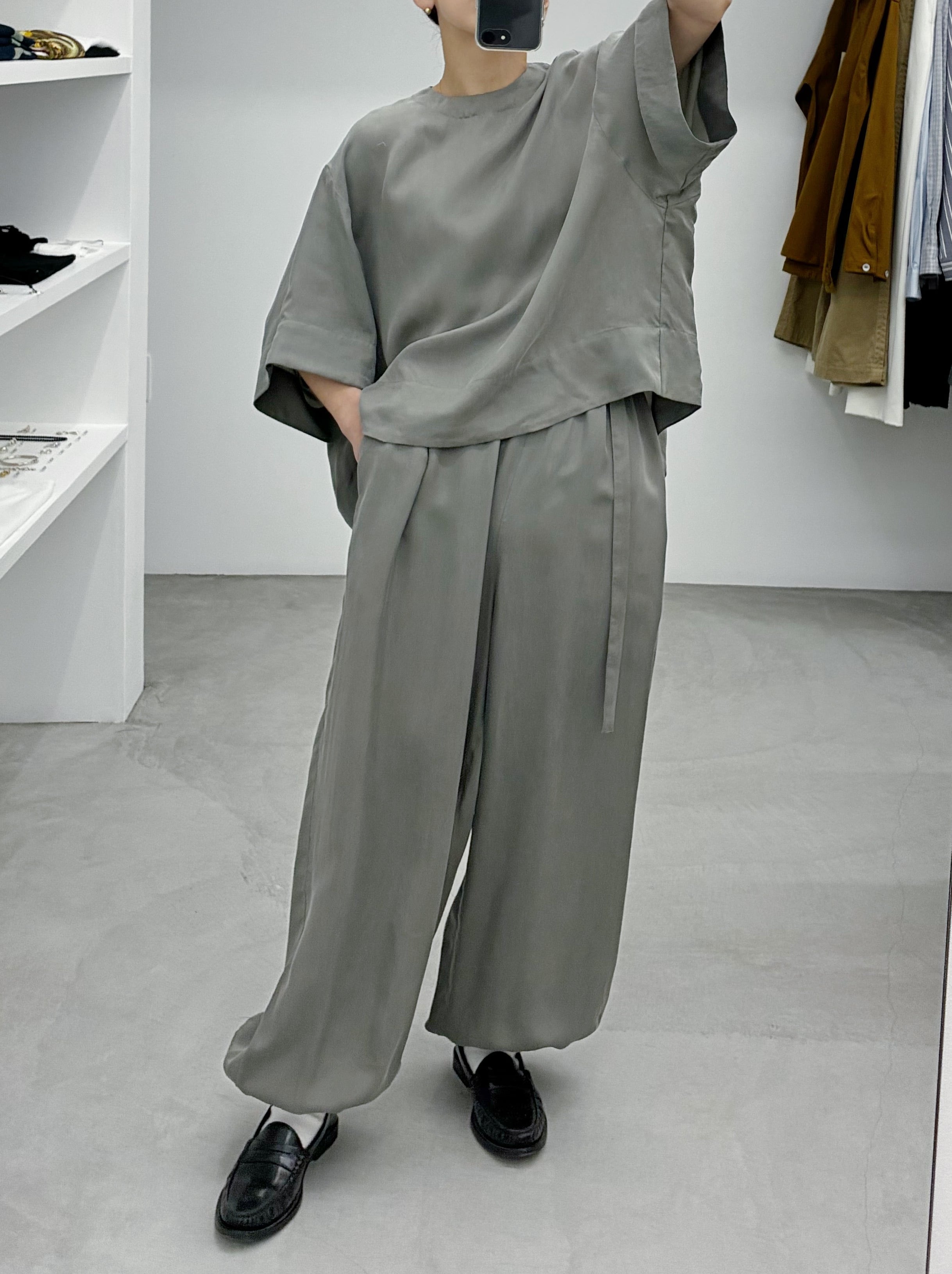 とにかくストレスフリー。そしてしなやかなキュプラ生地の美しい落ち感によりすっきりとしたバランスの良いシルエットが嬉しいです。