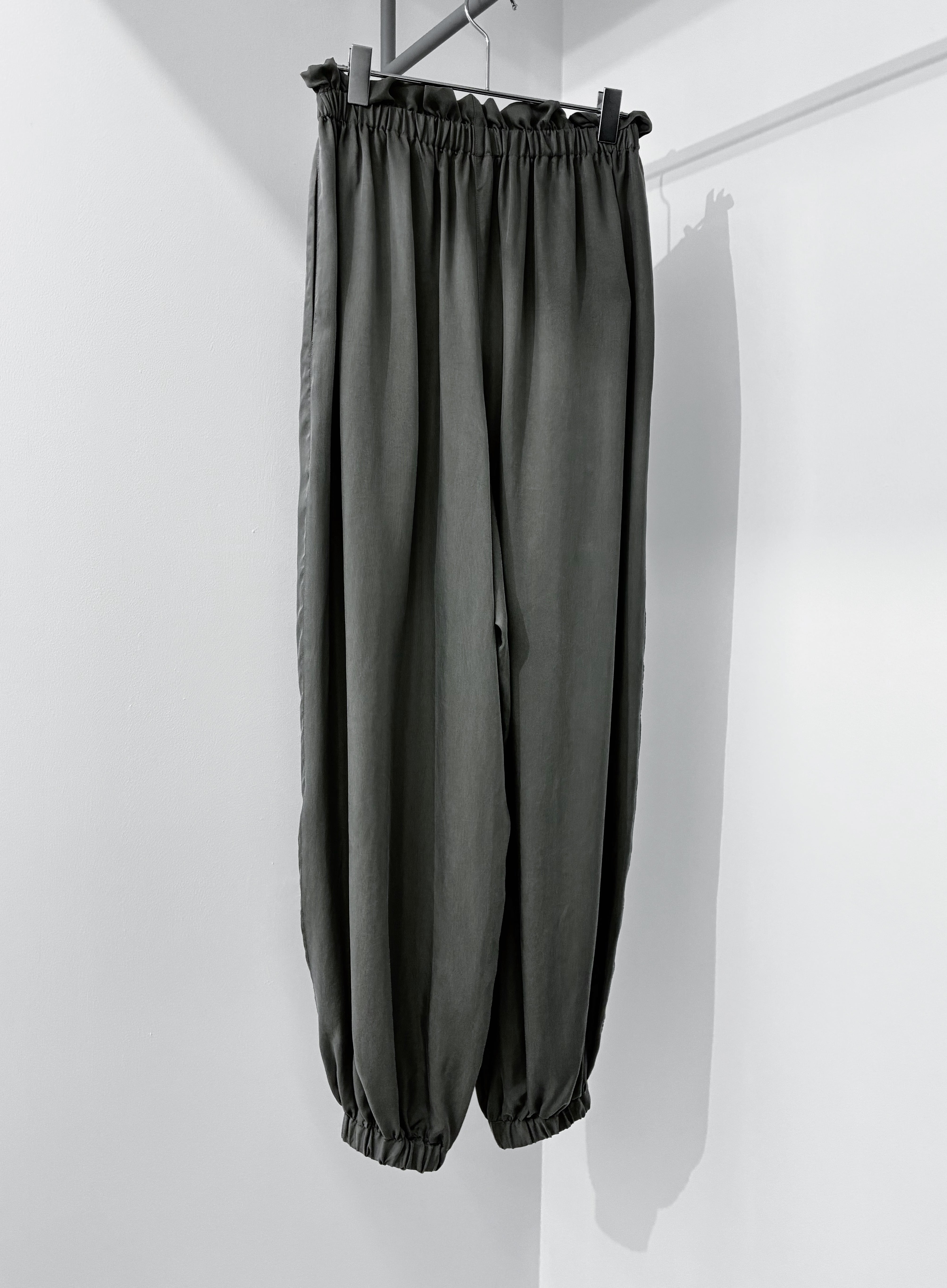 裾もゴム仕様。シルエットにさりげない変化を生み、スタイリングに奥行きをもたらします。