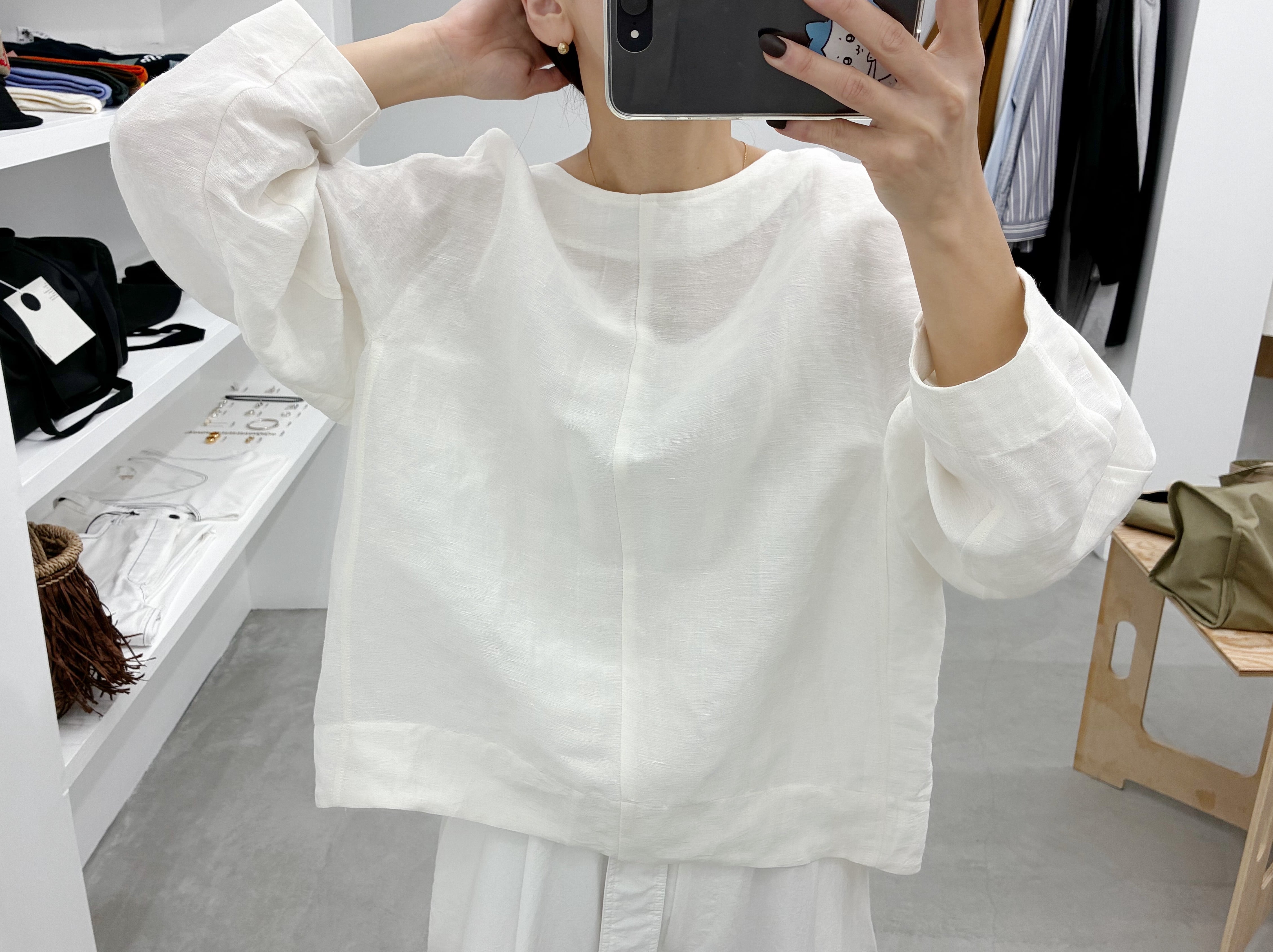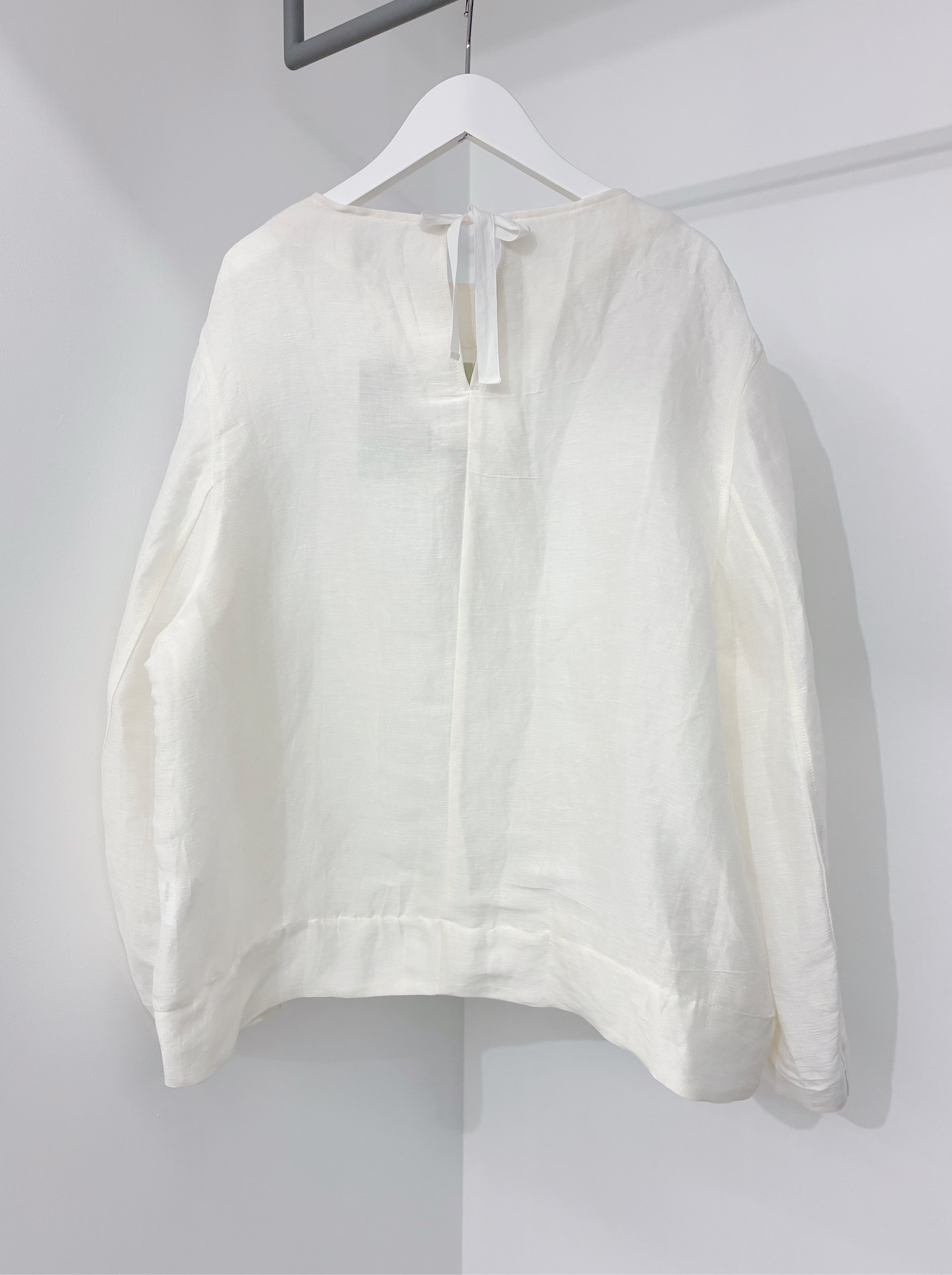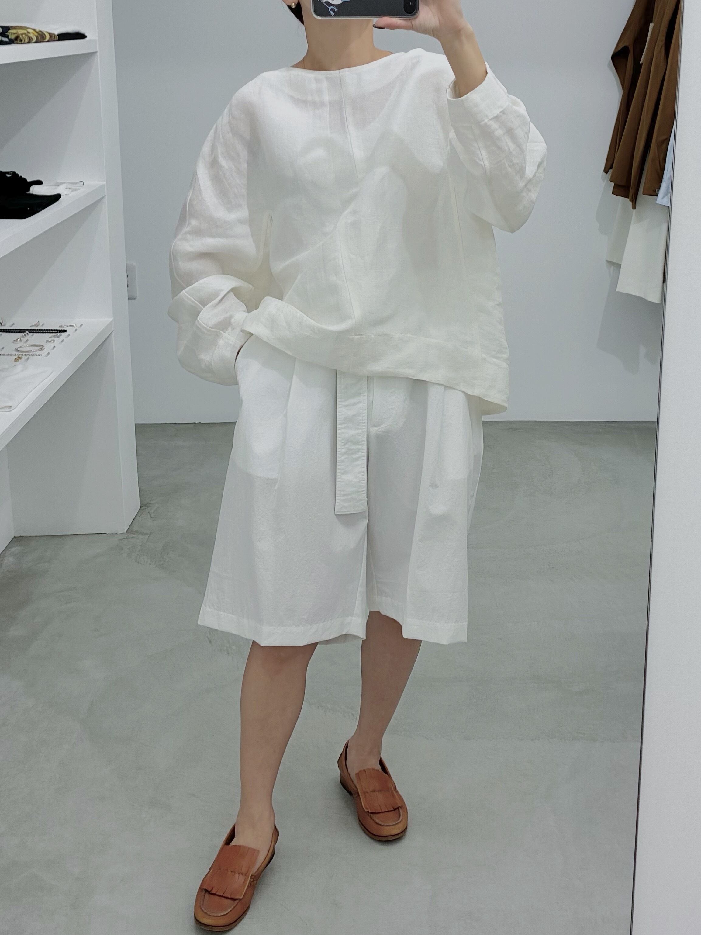 洗練されたミニマルなデザインのリネンキュプラ生地のシンプルプルオーバー。