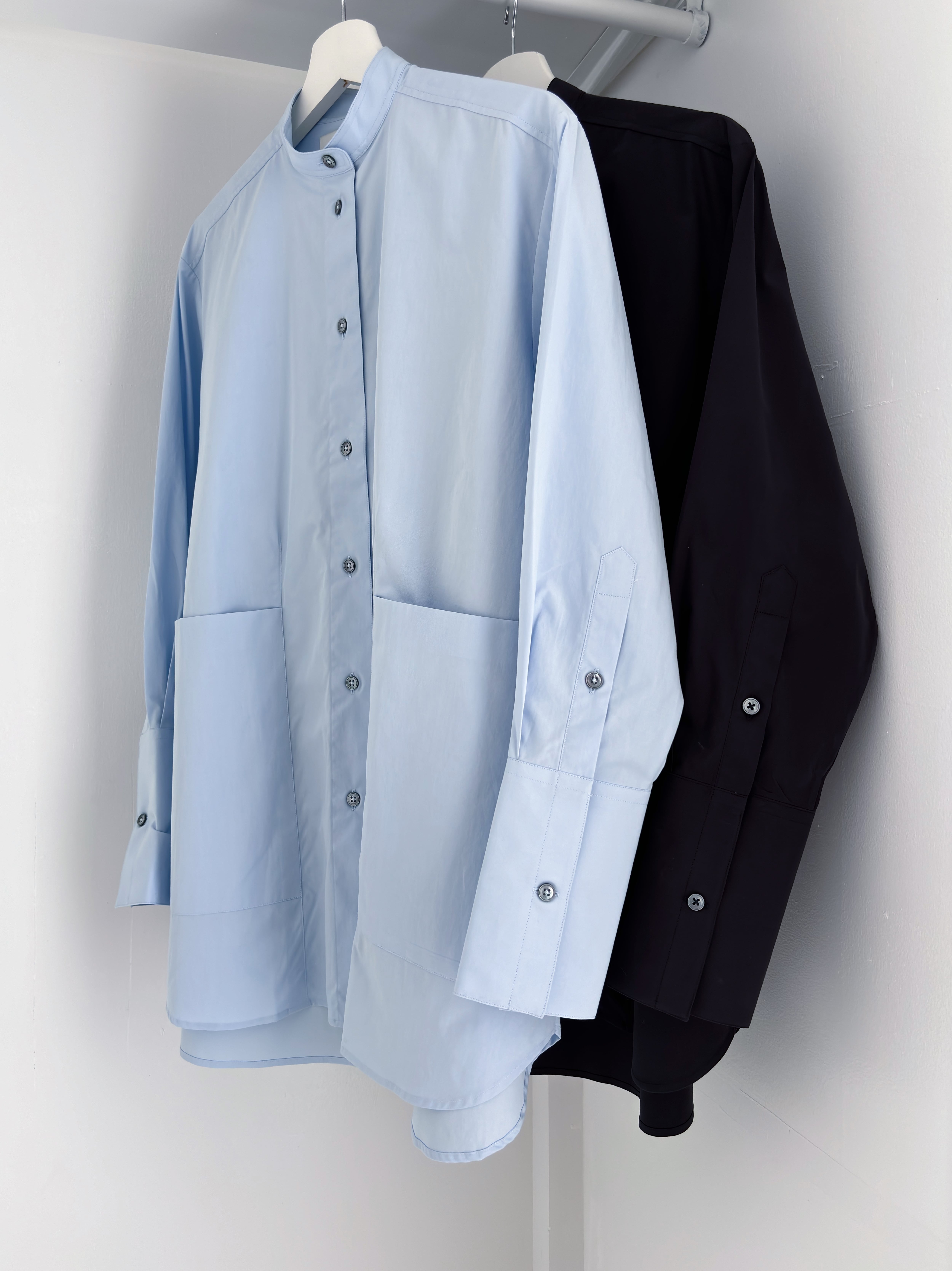 パウダーコットンをマットに仕上げたシャツ生地を使用したバンドカラーシャツ