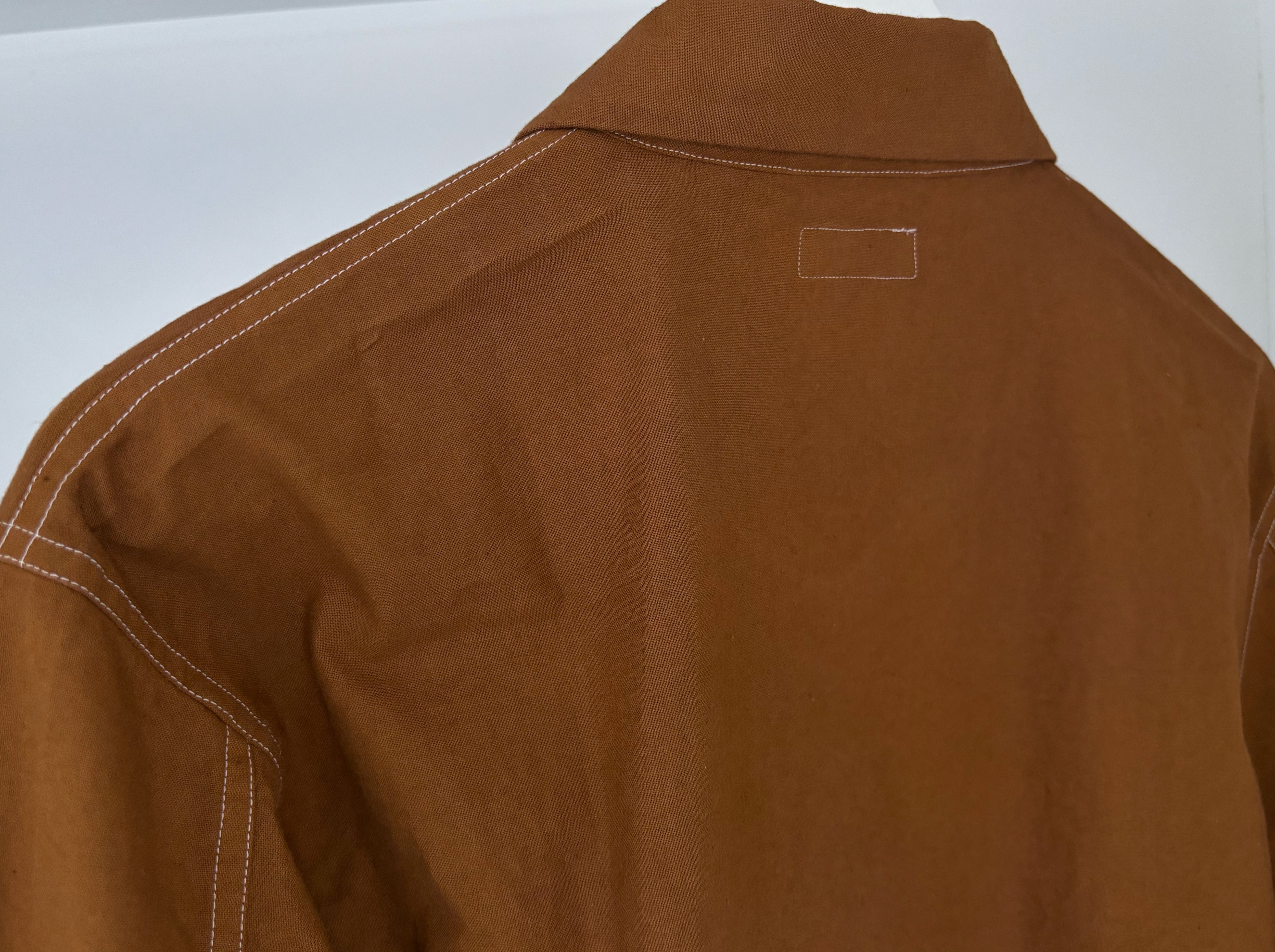 ブラウンの生地に白のステッチがポイントです。
